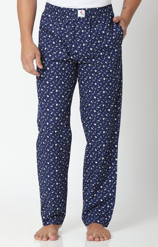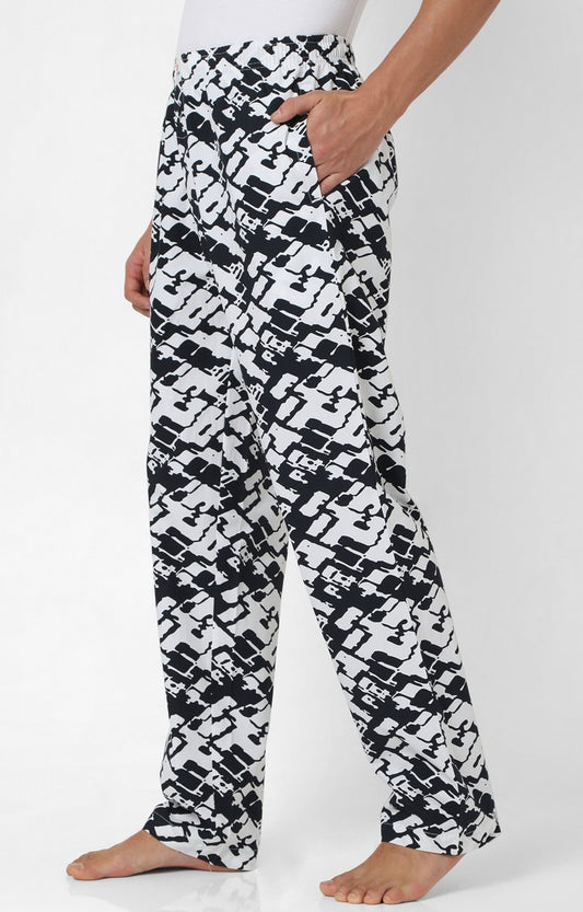 Men White & Dark Navy Cotton Printed Pyjama - UnderJeans By Spykar