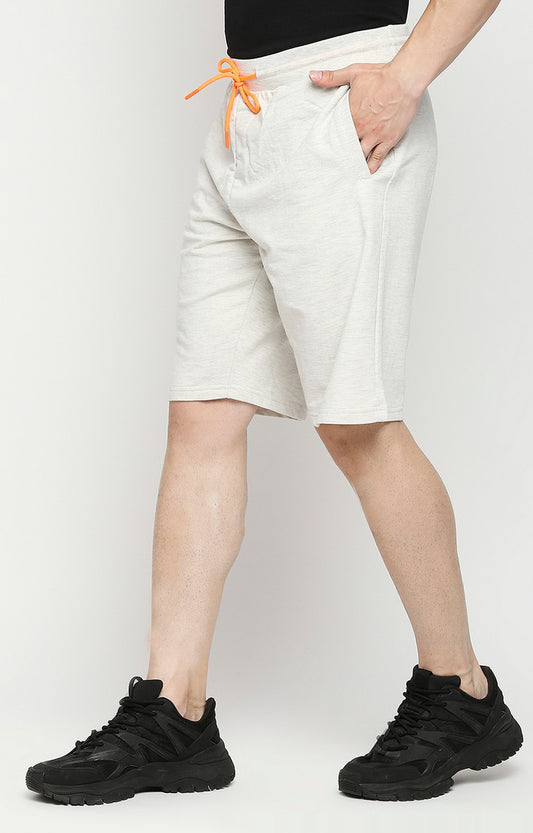 Men Cotton Blend Knitted Ecru Melange Shorts - UnderJeans by Spykar
