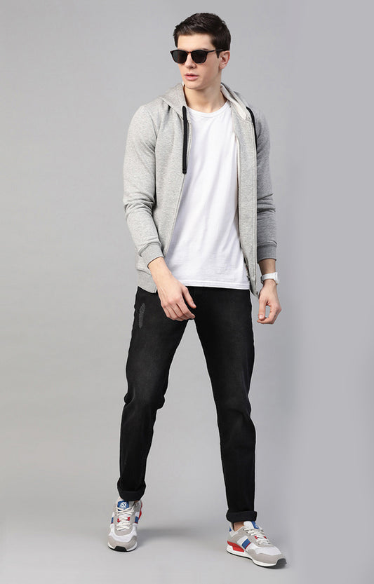 Grey Melange Cotton Solid Hooded Sweatshirts- UnderJeans by Spykar