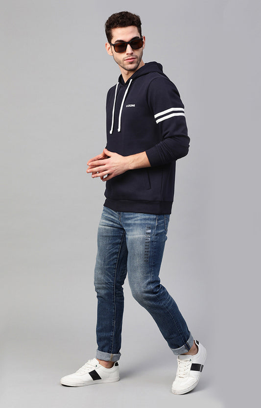Navy Cotton Solid Hooded Sweatshirts- UnderJeans by Spykar