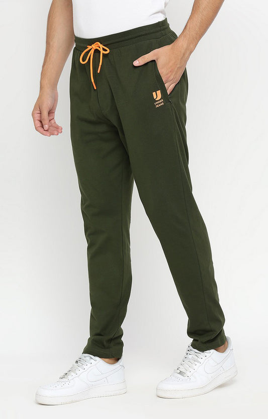 Men Knitted Olive Cotton Trackpant - UnderJeans by Spykar