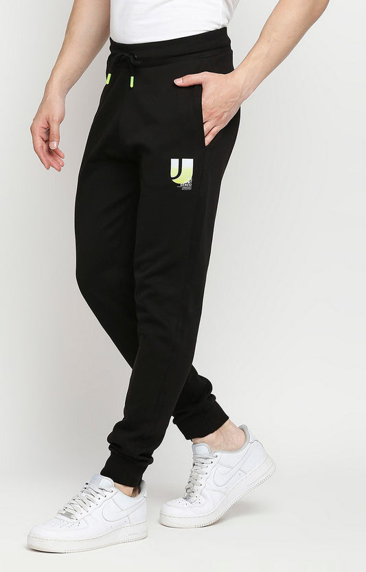 Men Black Cotton Regular Fit Trackpant- UnderJeans by Spykar