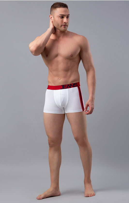 Men White-Red Cotton Blend Trunk- UnderJeans by Spykar