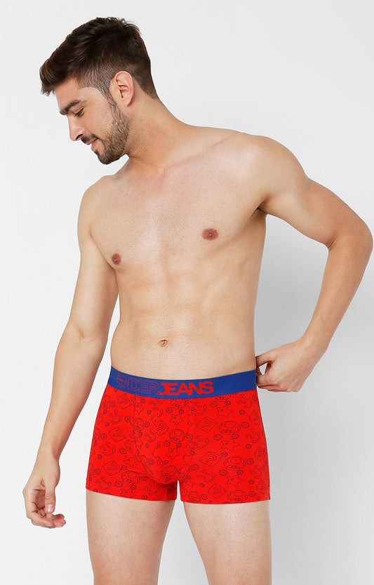 Underjeans by Spykar Men Red Cotton Blend Printed Trunk
