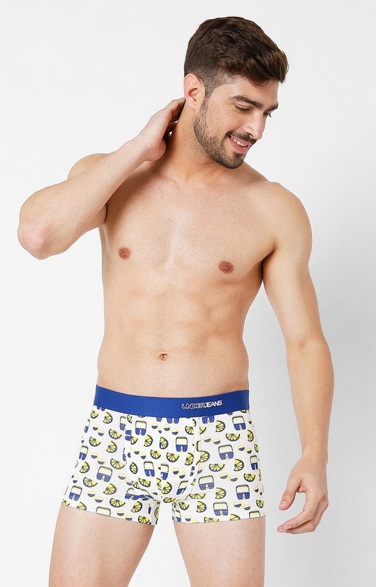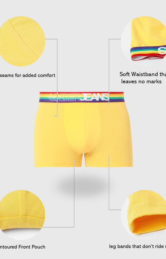 Men Yellow Multi Cotton Blend Trunk- UnderJeans by Spykar