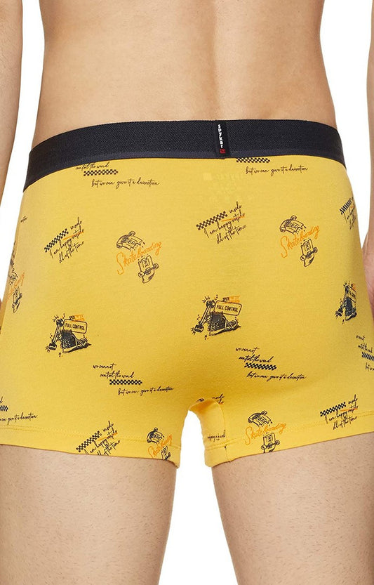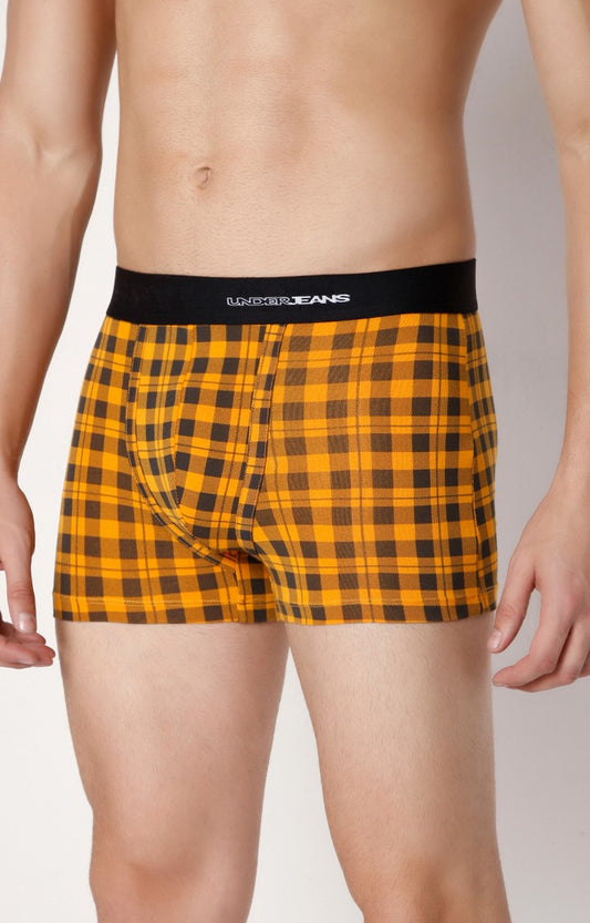 Men Yellow Check Cotton Blend Trunk- UnderJeans by Spykar