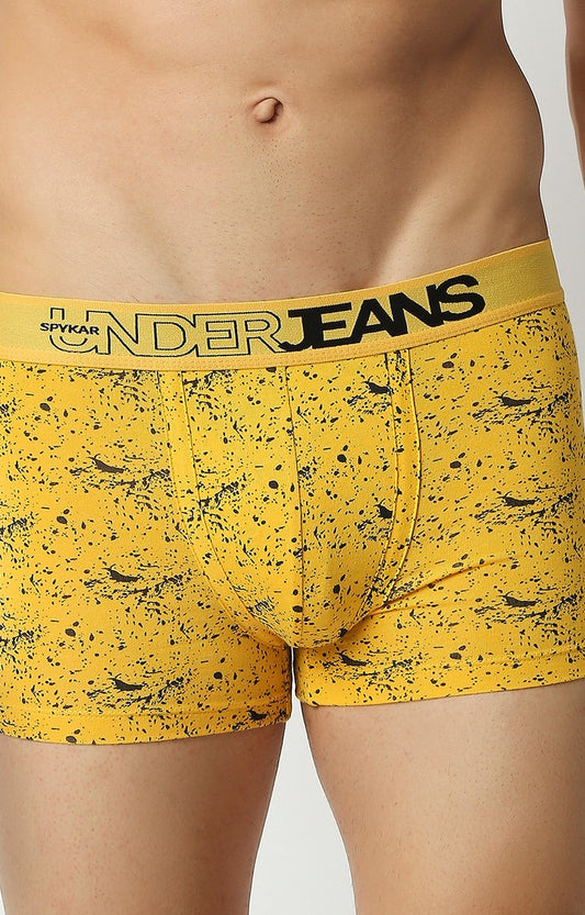 Men Yellow Cotton Blend Regular Fit Trunk - UnderJeans by Spykar