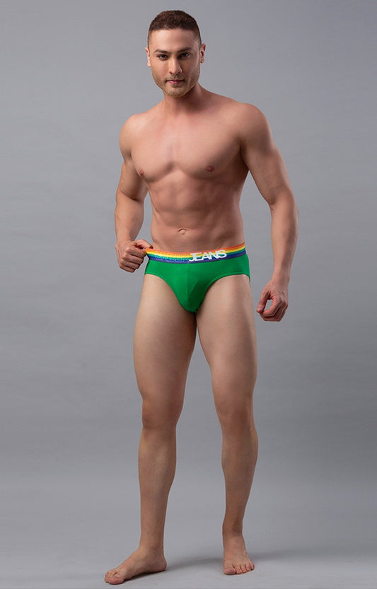Men Green-Multi Navy-Multi White-Blue Cotton Blend Brief (Pack of 3)- UnderJeans by Spykar