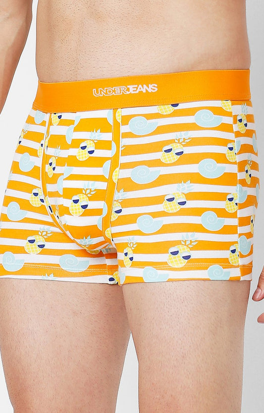 Men Orange Cotton Blend Printed Trunk- UnderJeans by Spykar