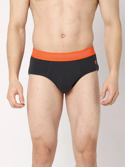Men Black & Grey-Orange & Olive Cotton Blend Brief (Pack of 3)- UnderJeans by Spykar