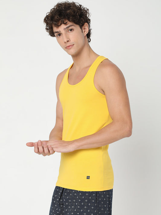 Men Yellow Cotton Blend Regular Fit Vest - UnderJeans by Spykar