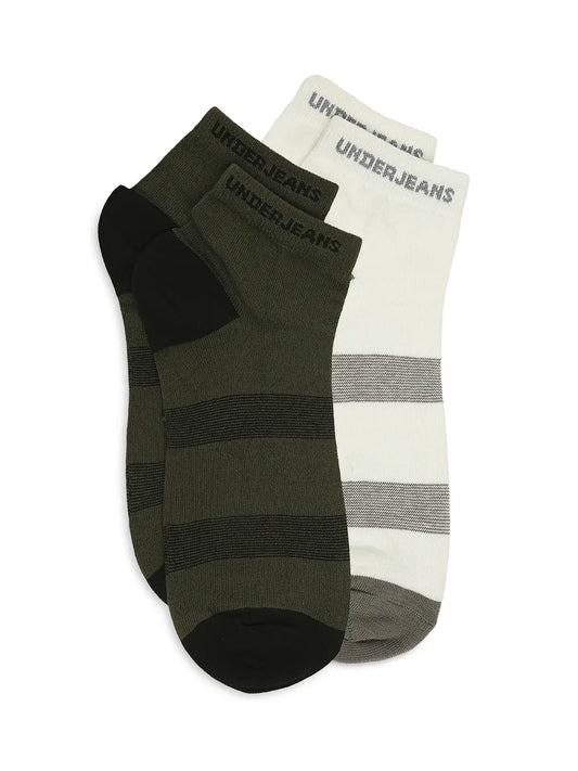 Men White & Olive Ankle Length Socks - Pack Of 2- Underjeans by Spykar
