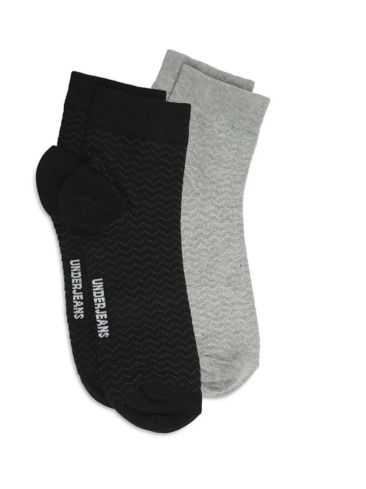 Men Dark Grey & Navy Ankle Length Socks - Pack Of 2- Underjeans by Spykar