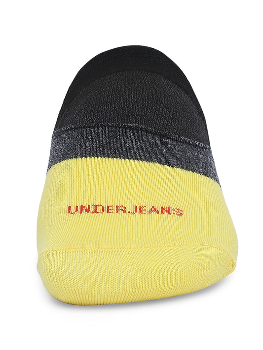 Men Yellow & Olive Cotton Blend No Show Socks - Pack Of 2 - Underjeans by Spykar
