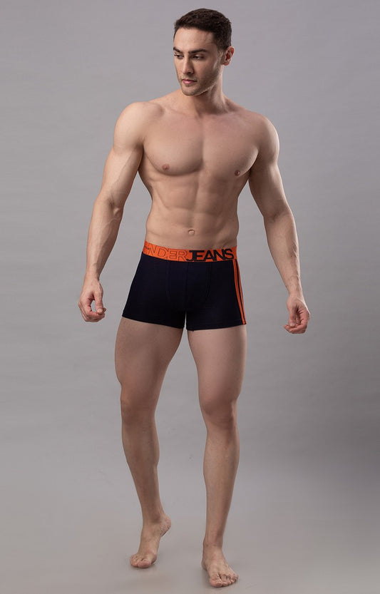 Men Navy-Orange Cotton Blend Trunk- UnderJeans by Spykar