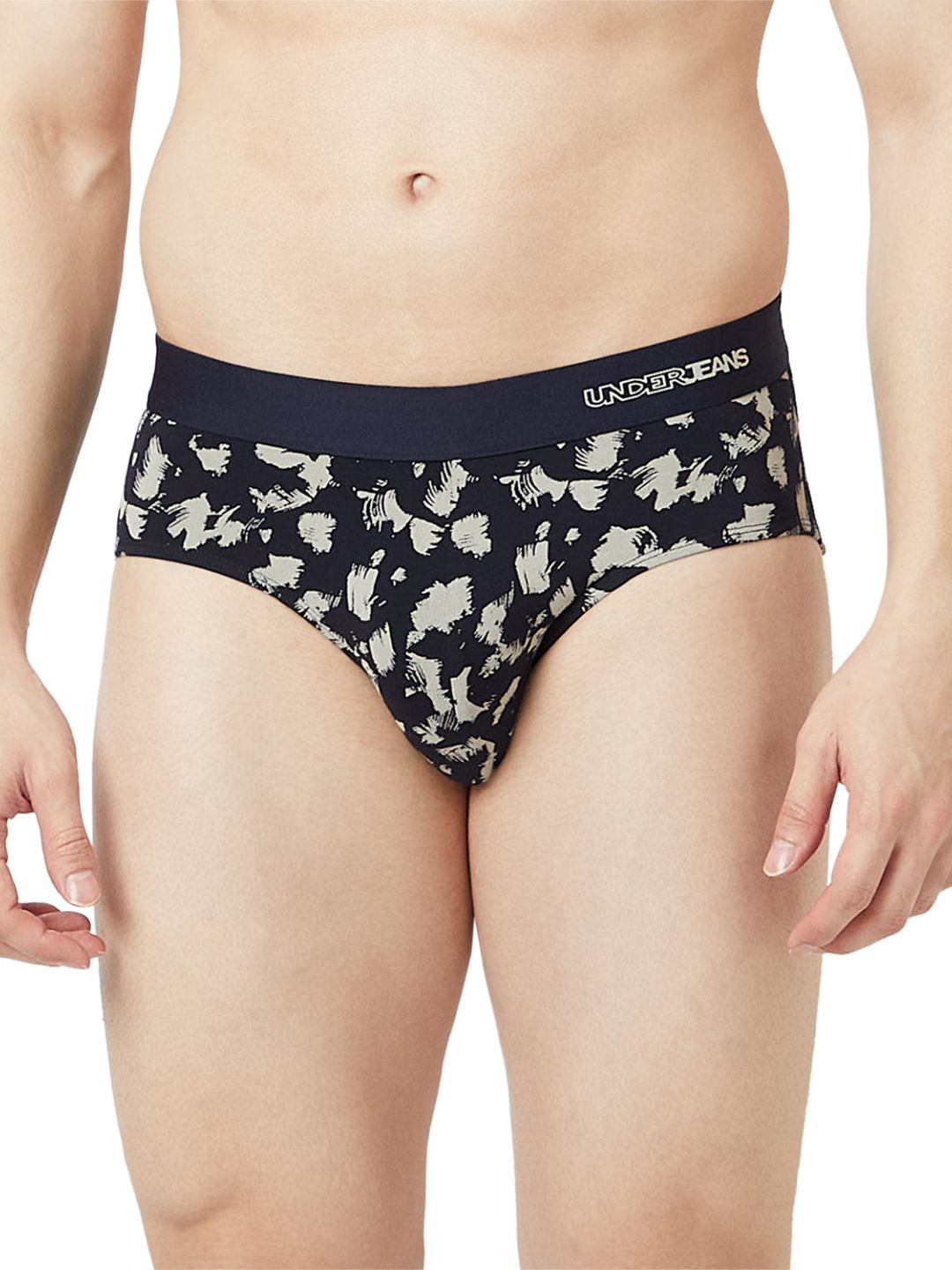 UnderJeans by Spykar Men Basic Navy ECRU Mid-Rise Printed Ultrasoft Briefs